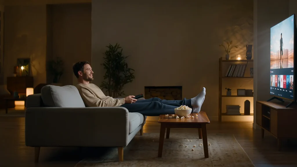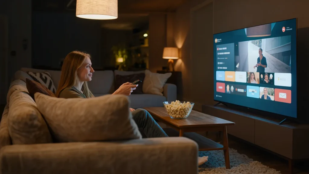 Fire TV StickやChromecastなどのストリーミングデバイスを使えば、テレビのHDMI端子に接続するだけで視聴できます。最近のスマートテレビなら、アプリをインストールするだけでOKです。