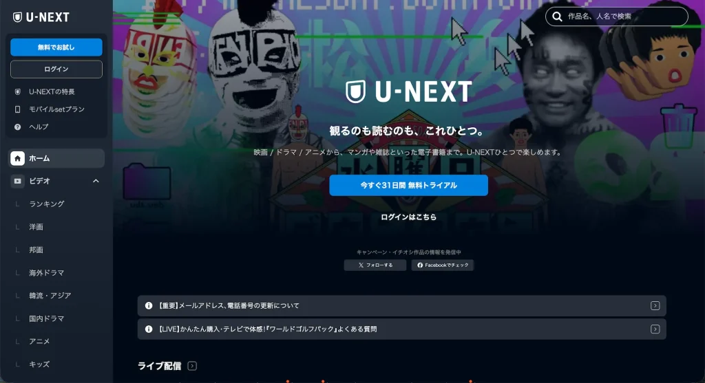 31 日間の無料トライアルもあるので、迷ったらまず U-NEXT を試してみてください。