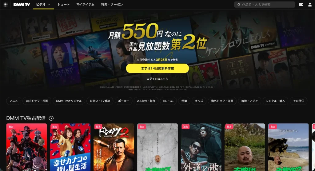 - DMM TV(14日間)